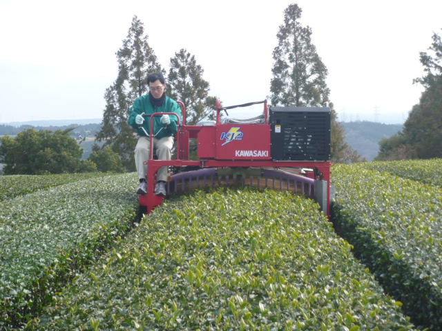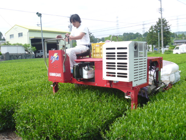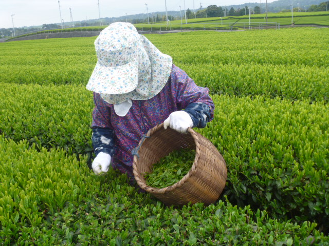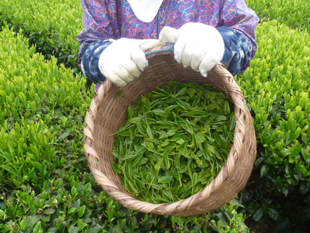現在では機械での摘み取りが主流ですが、最初の品質の良い茶葉を収穫する時は手で摘んでいます。