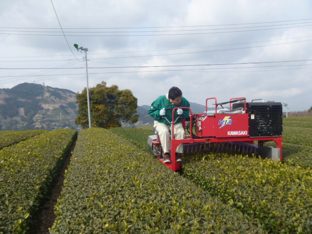一番茶の芽が揃って出る様に茶畑をきれいにならす作業の事です。