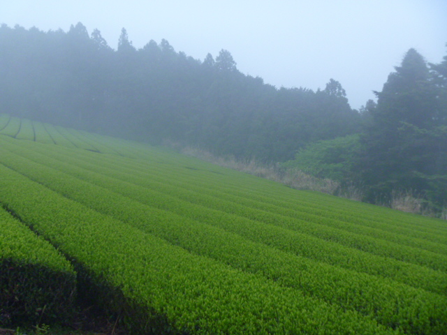 2014年4月19日午前5時頃撮影の静岡掛川市 東山地区の茶園の様子です。